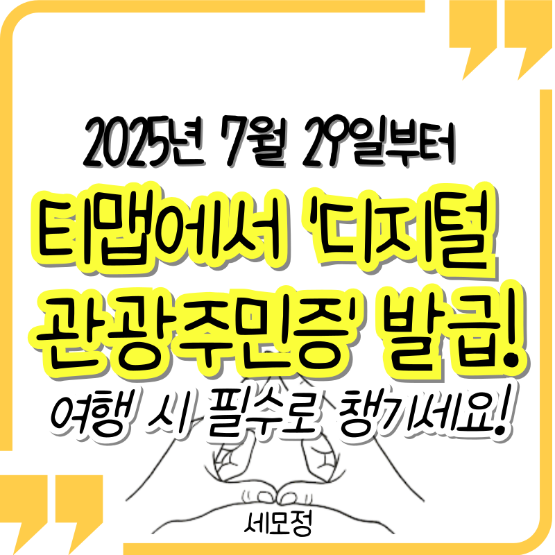 2025년 7월 29일부터 디지털 관광주민증이 한국관광공사 ‘대한민국 구석구석’ 앱뿐만 아니라, 국민이 자주 사용하는 티맵(TMAP) 등 다양한 민간 앱에서도 발급 및 이용이 가능해졌습니다. 디지털 관광주민증은 인구감소 지역 관광 활성화 정책의 핵심 수단으로, 간편 발급과 즉각적인 할인 혜택이 특징입니다.